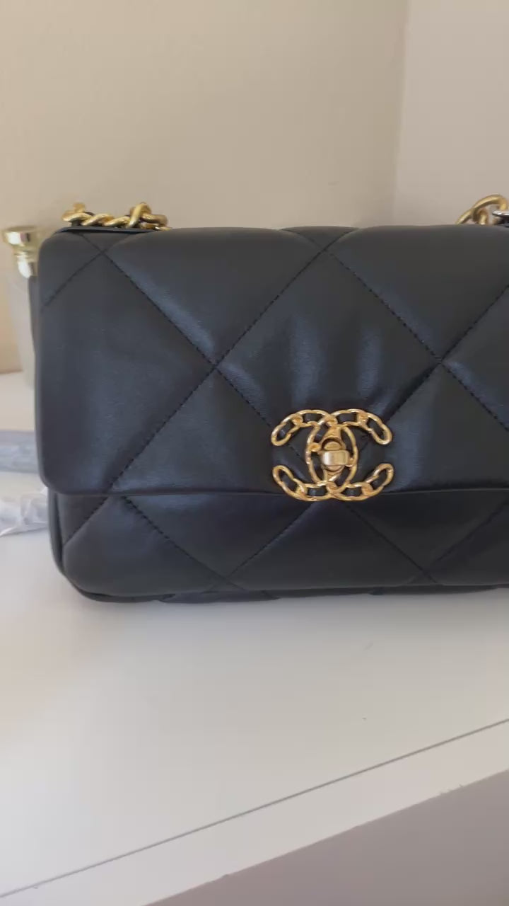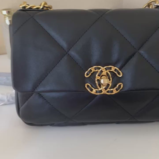 Black Quilted Lambskin Flap Bag 26cm