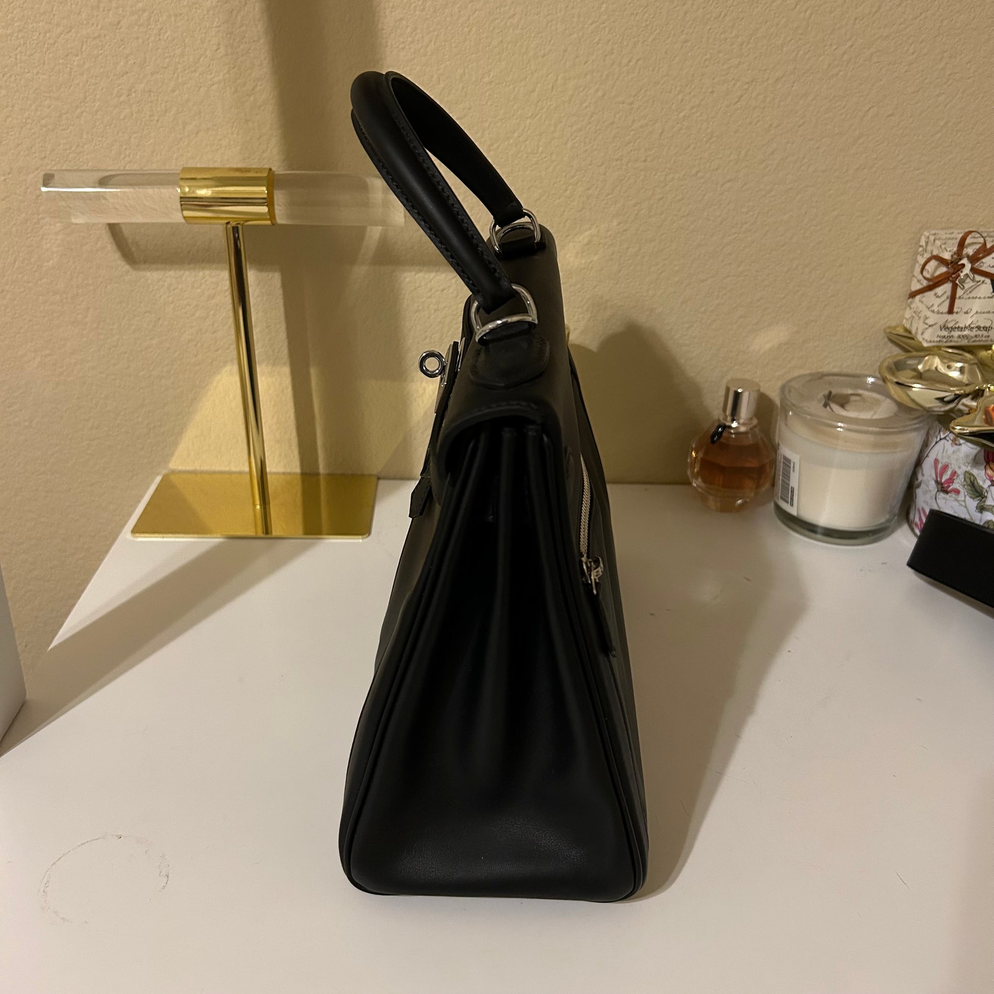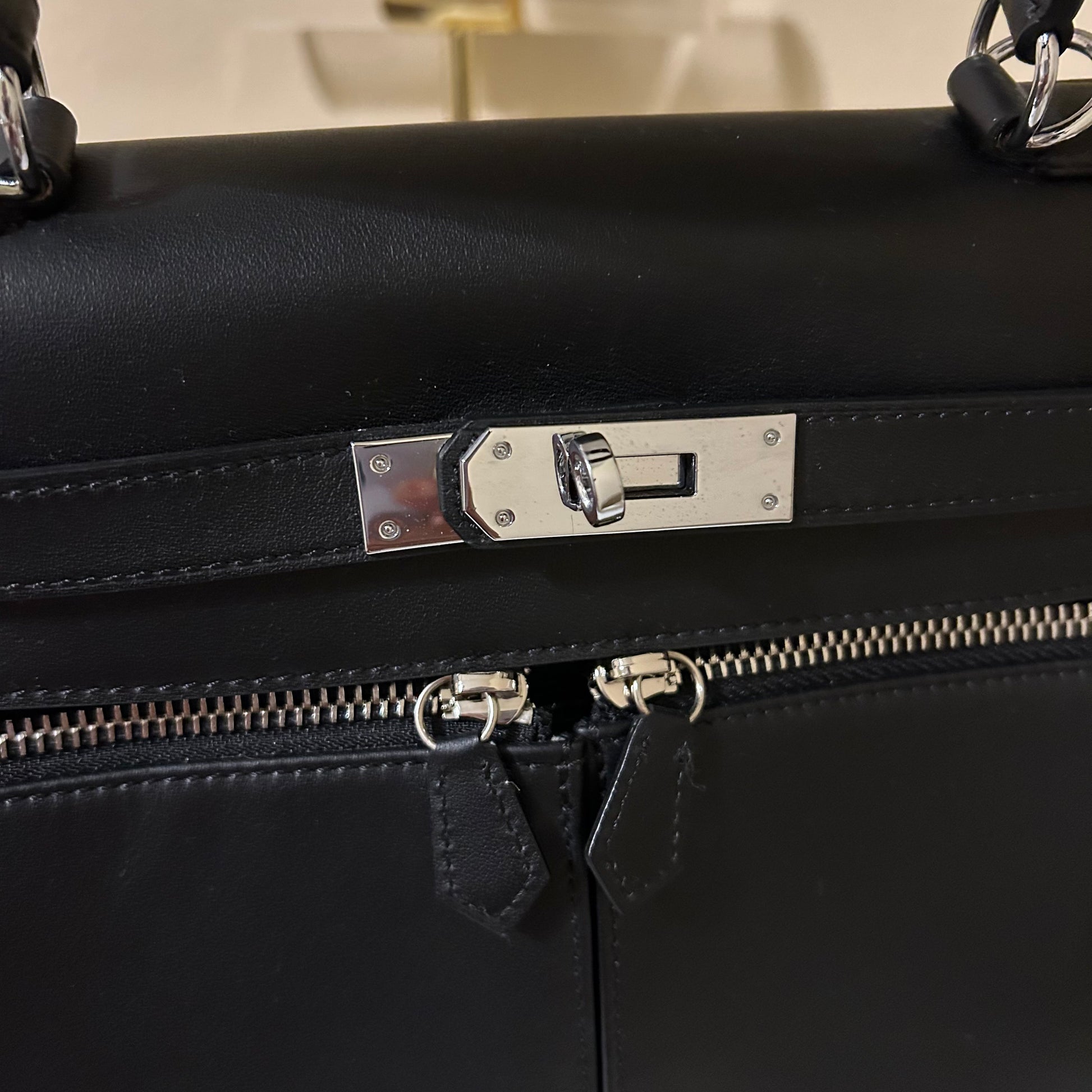 Top grain genuine calfskin in brown with silver toned hardware. Contrasting hand stitches.