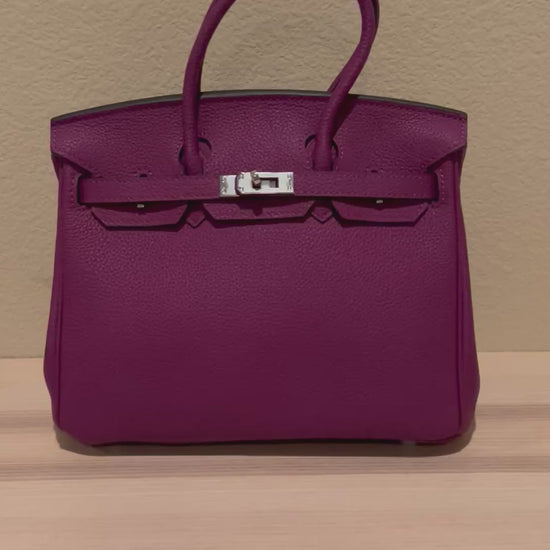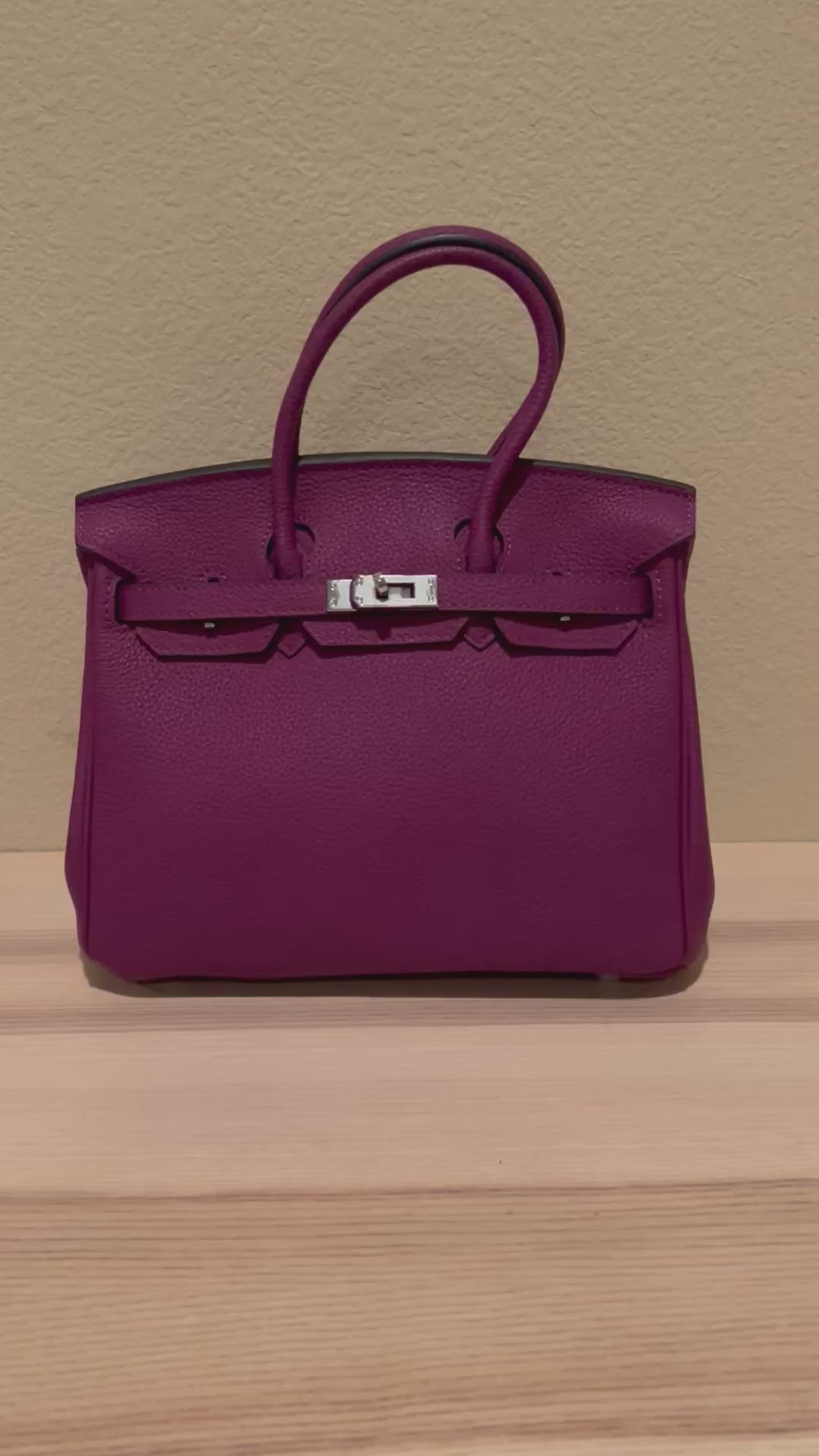 Comes with an adjustable shoulder strap, lock, key and clochette.
