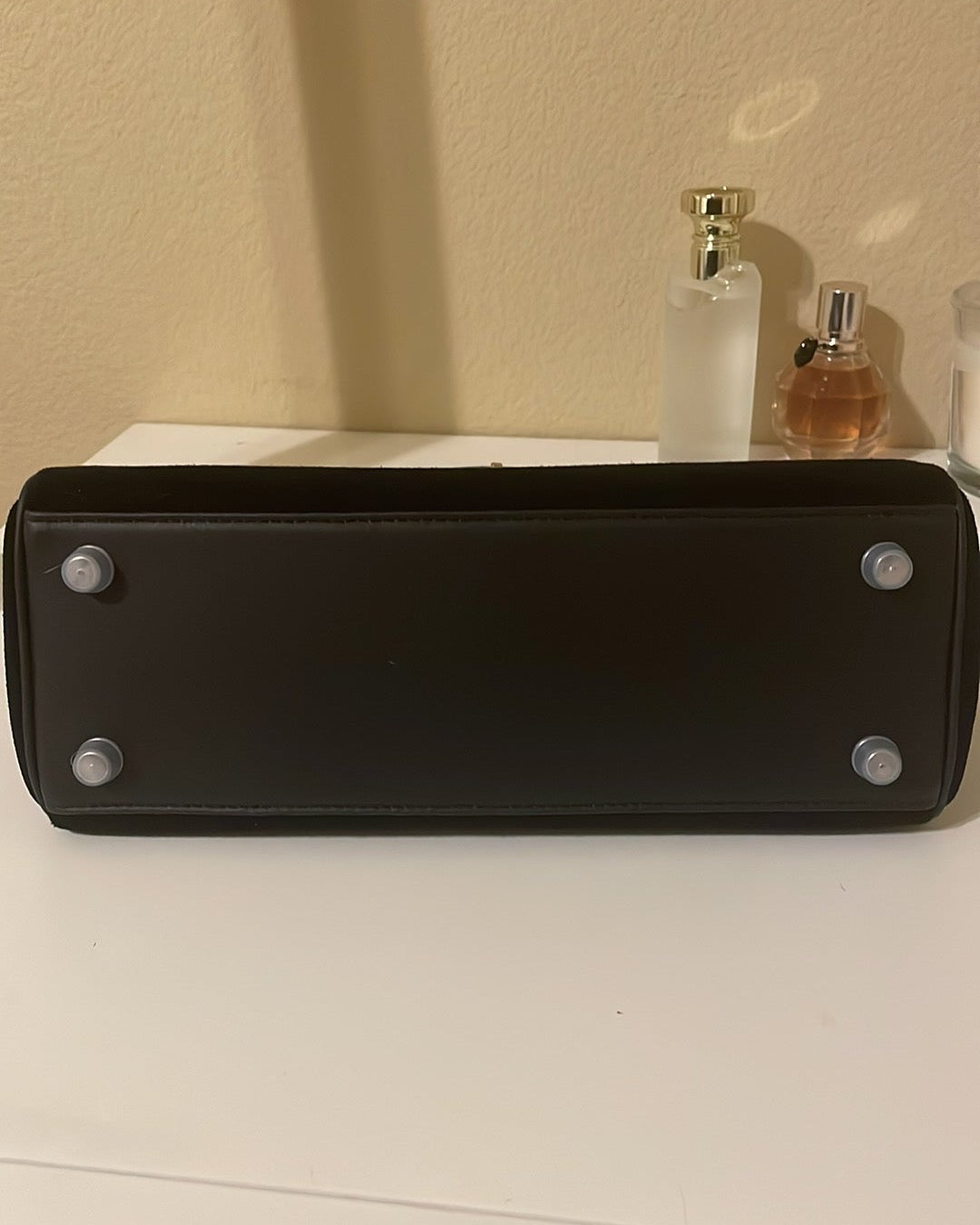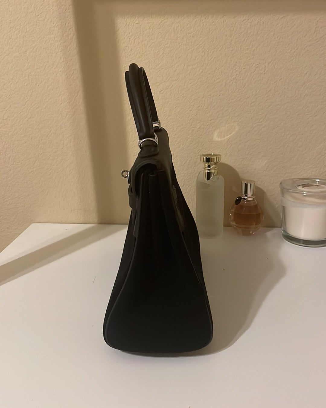 Top Handle Belted KL Satchel 25cm Black Suede