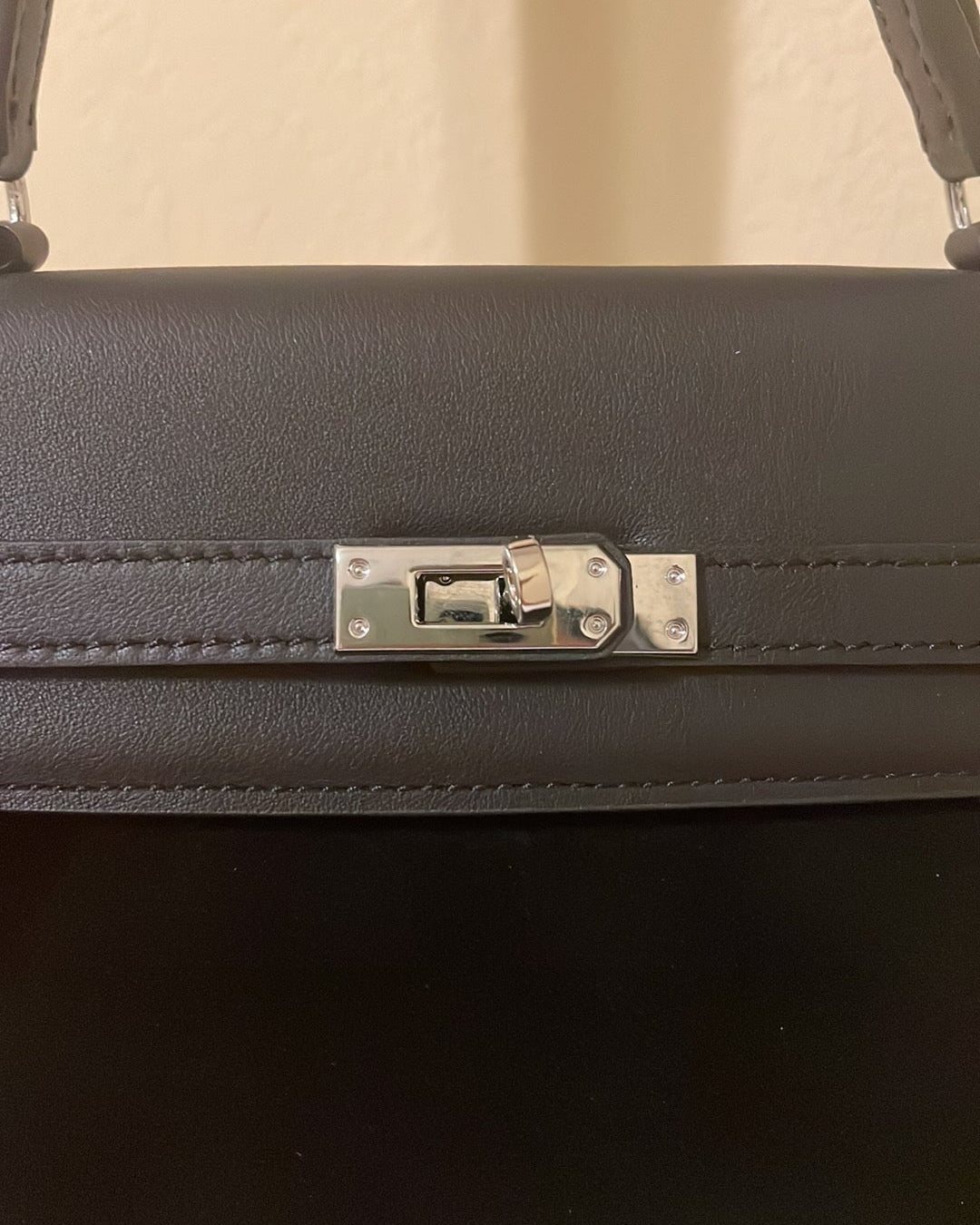 This bag is made of top grain swift leather and genuine suede combo. Silver toned hardware. Quiet luxury style.