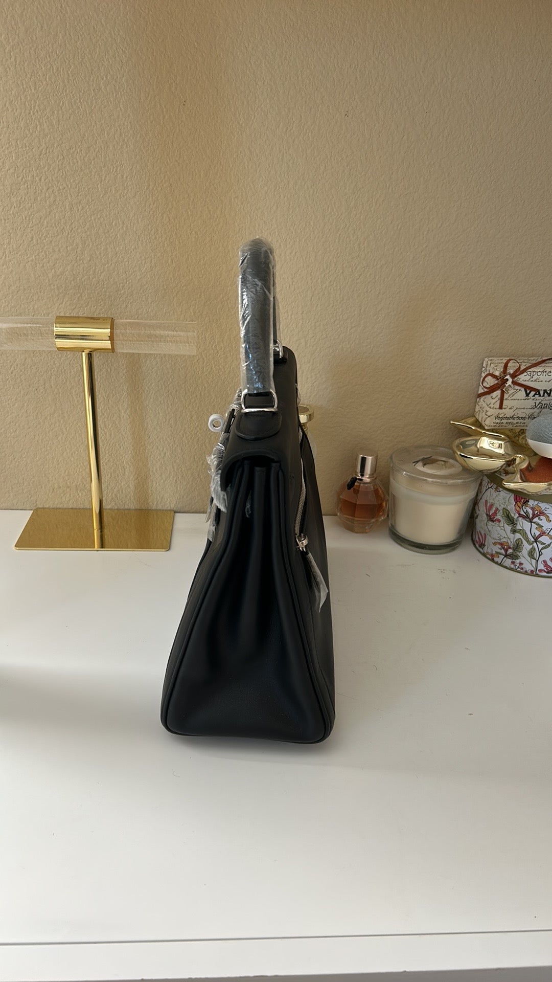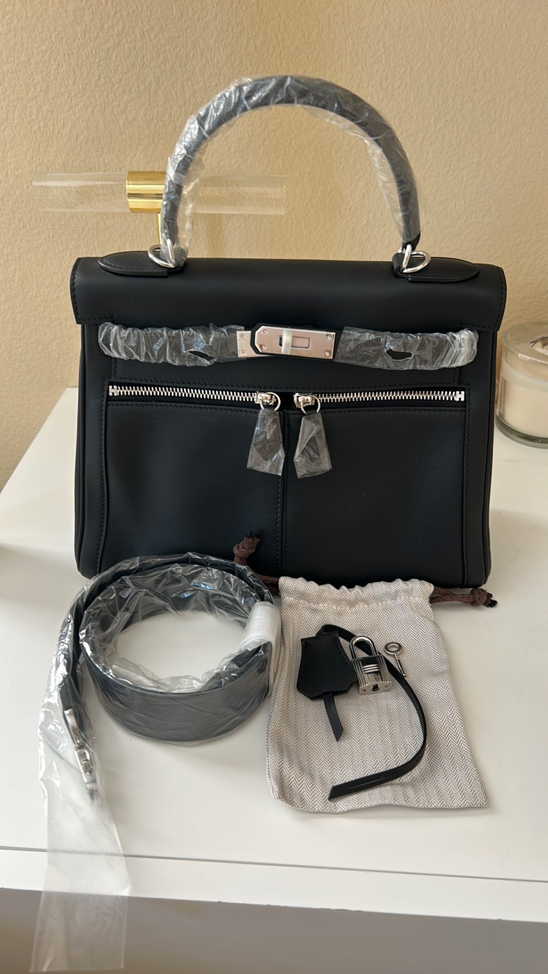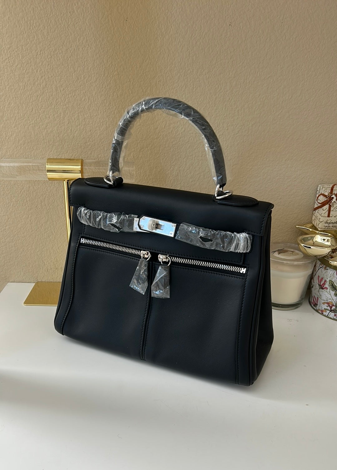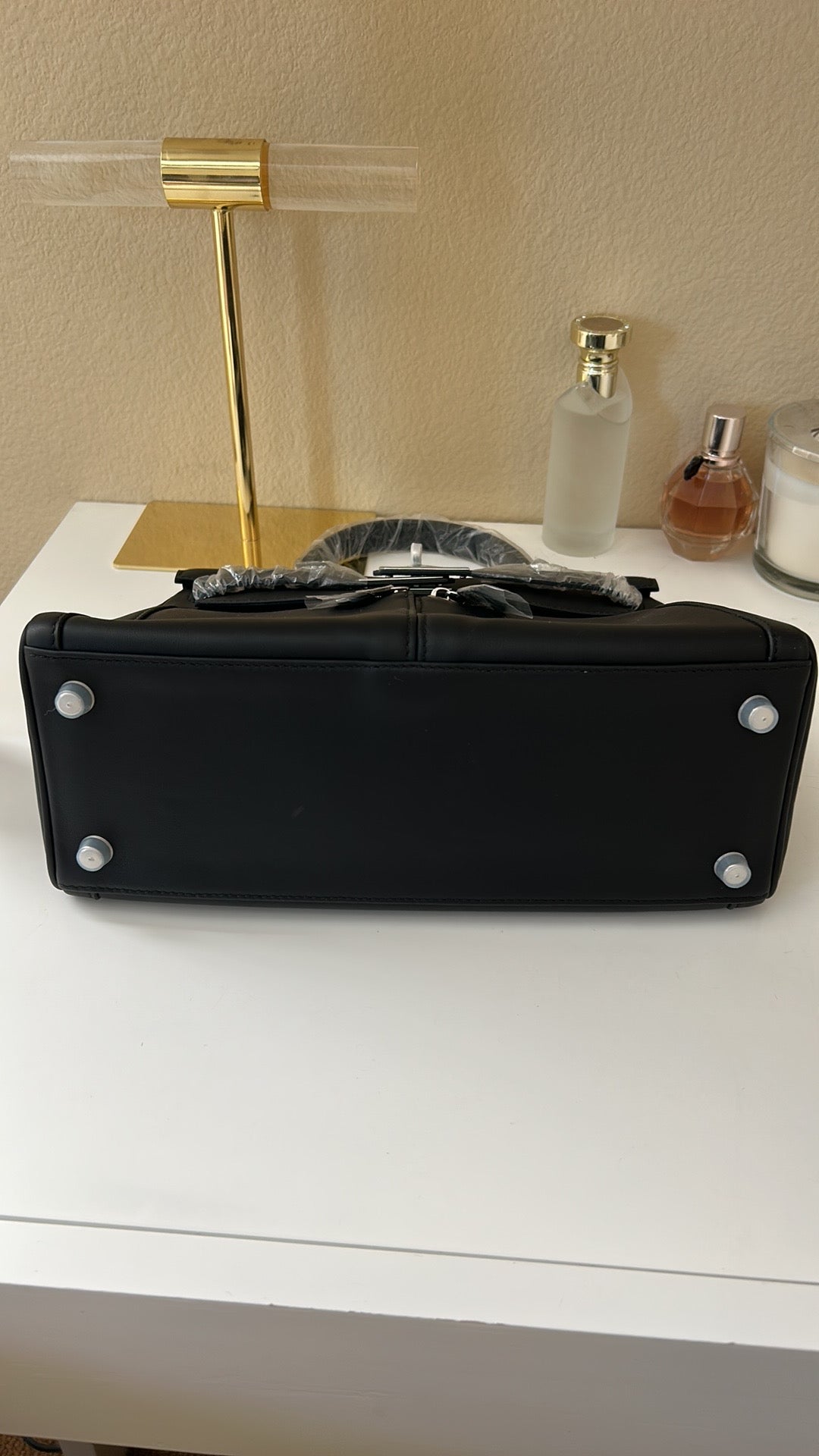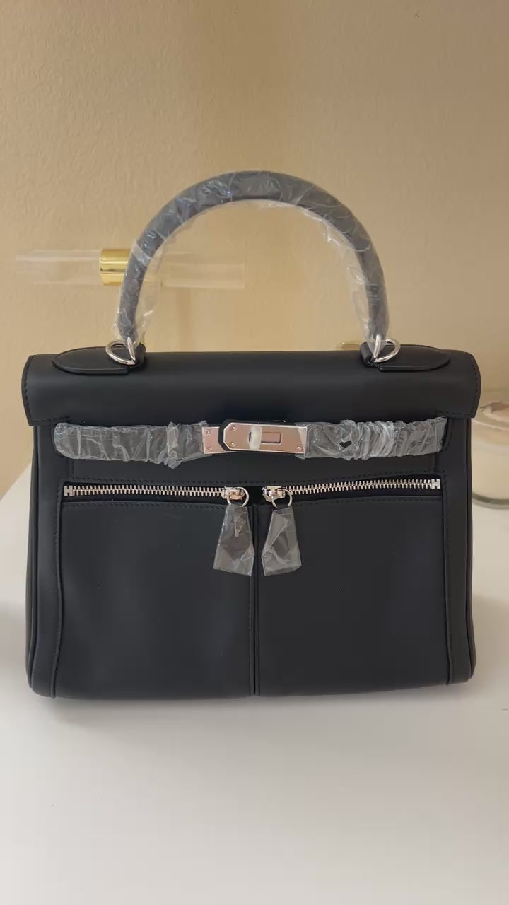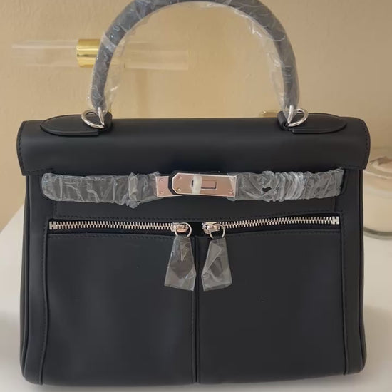 Top Handle Double Front Pocket Leather Satchel 28cm Black
