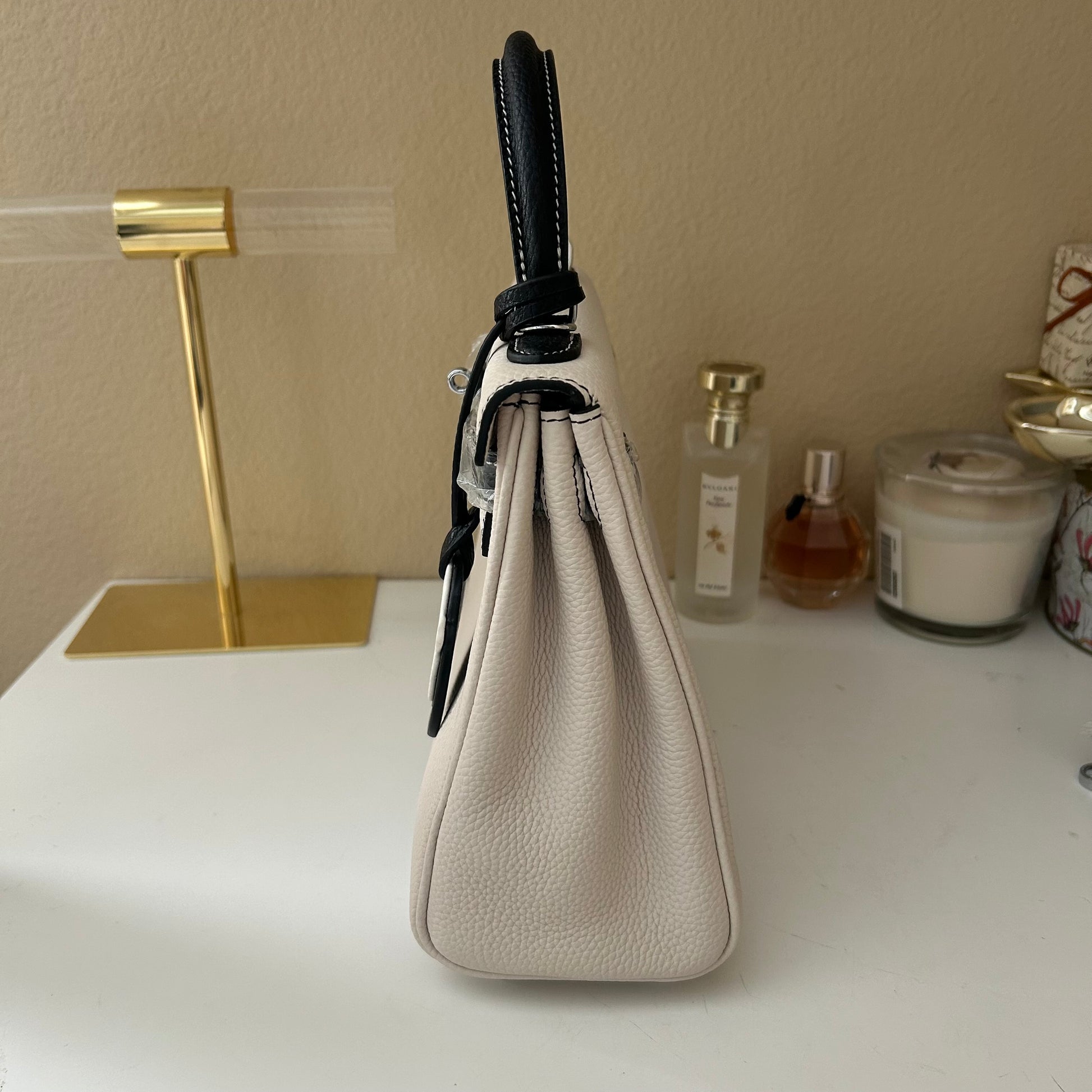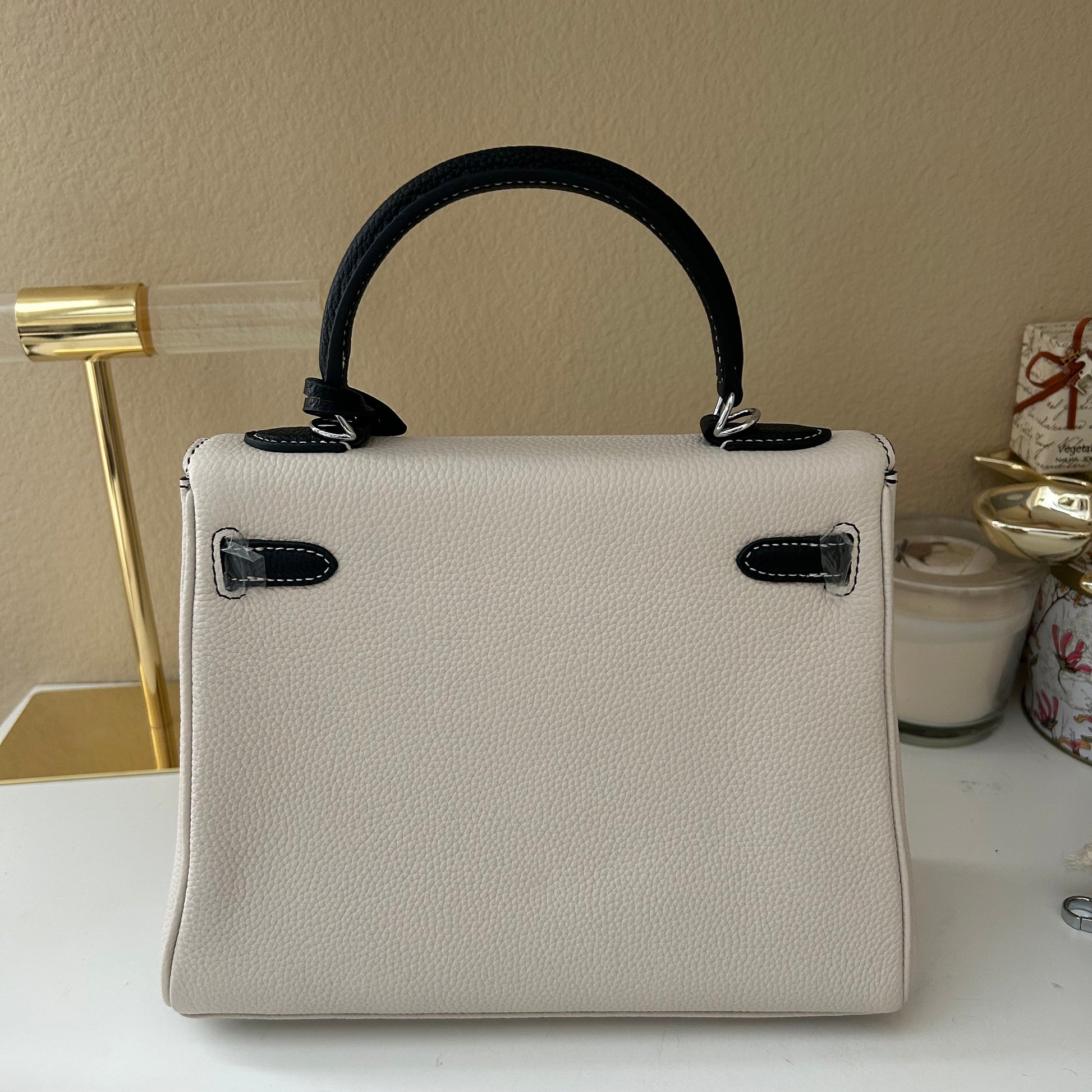 Top Handle Leather KL Satchel 25cm “Panda” Black & White