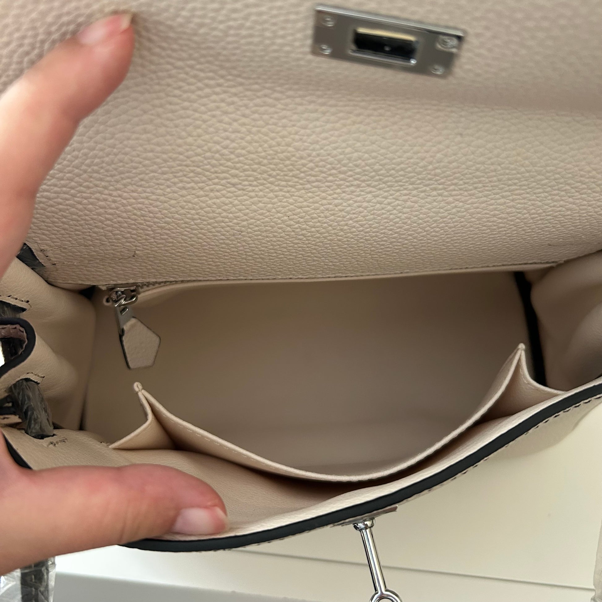 Silver toned hardware.