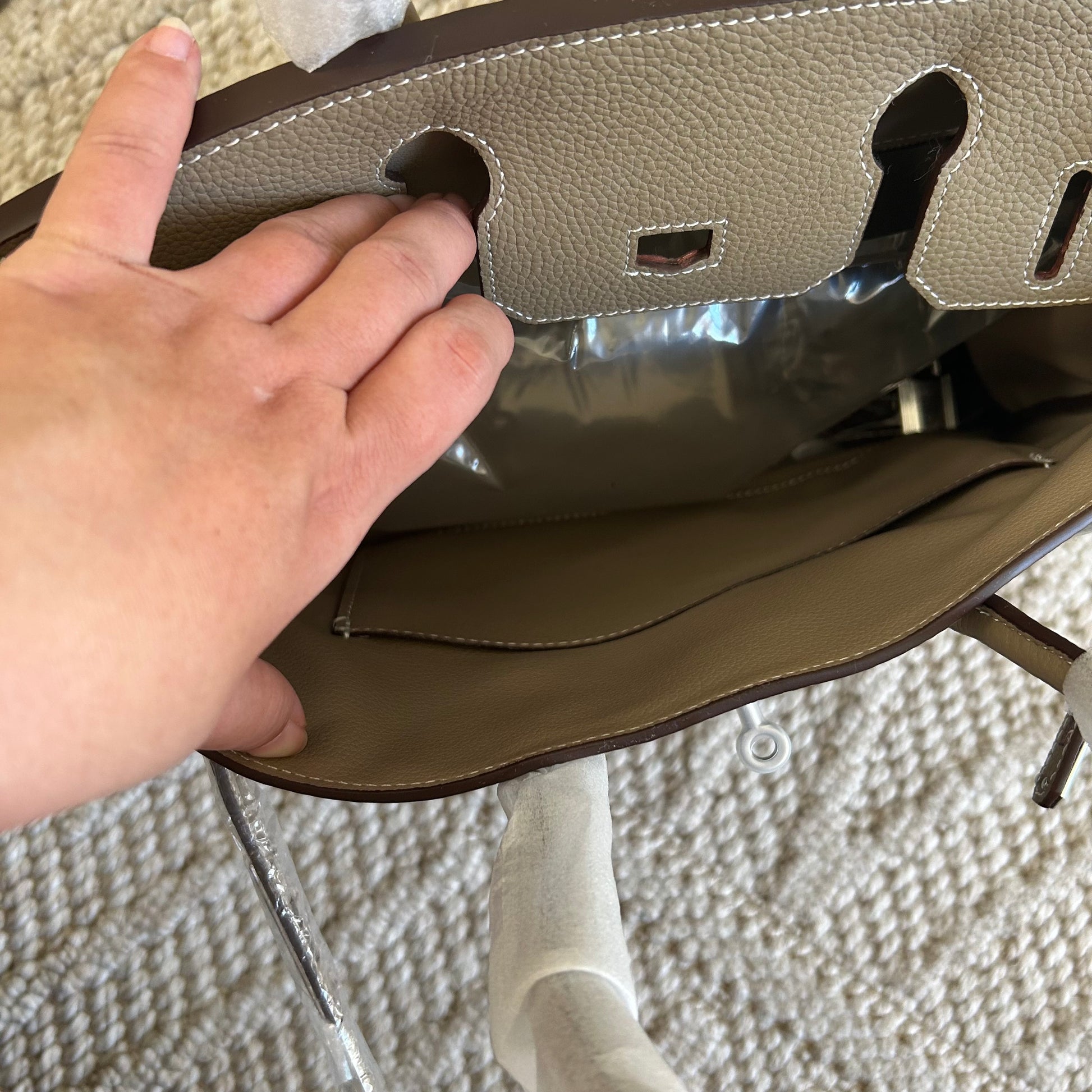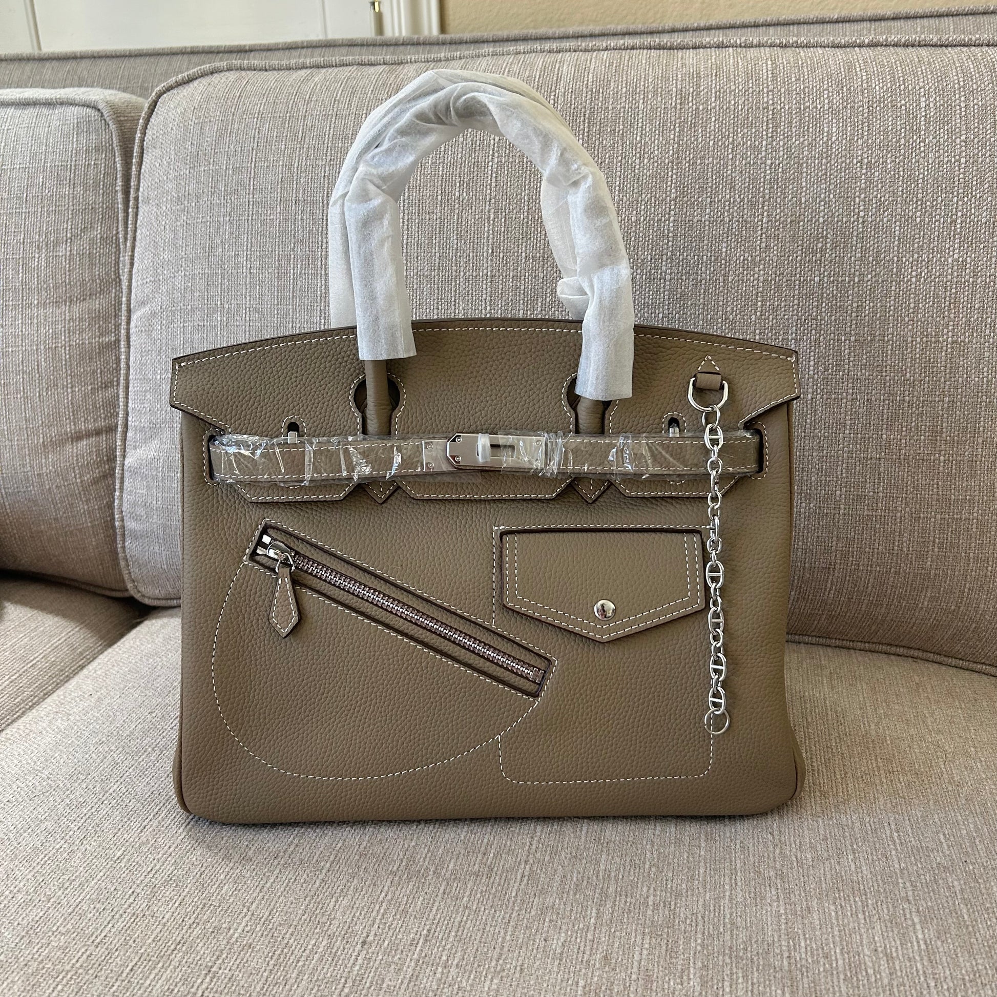 Top Handle Rock Style Leather Satchel 30cm Etaupe